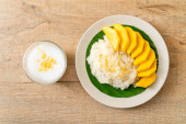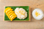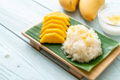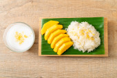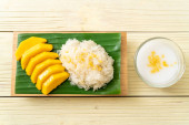 Zdjęcie "mango z lepkim ryżem - popularny tradycyjny deser Tajlandii" może być wykorzystywane do celów osobistych i komercyjnych zgodnie z warunkami zakupionej licencji Royalty-free. Obraz jest dostępny do pobrania w jakości wysokiej rozdzielczości do 5760x3840.