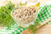 Kasza jęczmienna na białym tle