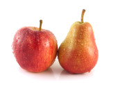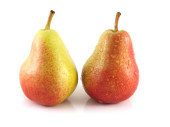 dwie dojrzałe gruszki czerwony na białym tle. na białym tle.