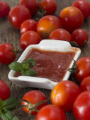 kieliszek soku pomidorowego i pomidorów