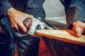 Ręce czarnoziem szlifowania drewna z maszyny specjalne.