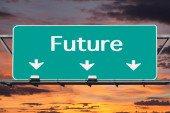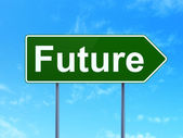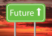 Zdjęcie "Przyszłych ulica znak, zachód słońca niebo w tle." może być wykorzystywane do celów osobistych i komercyjnych zgodnie z warunkami zakupionej licencji Royalty-free. Obraz jest dostępny do pobrania w jakości wysokiej rozdzielczości do 5760x3840.