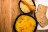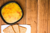W domu dyni ziemniaczany podawany z chlebem. Żywności ekologicznej.