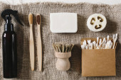 Widok z góry kije ucha, pasta do zębów w tube, kosmetyk krem, szczoteczki do zębów, kamienie i Bambus macierzystych na białym tle