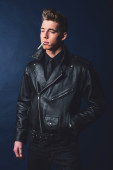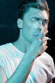 bezdomny człowiek w rękawiczki bez palców, oświetlenie papierosów