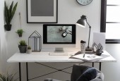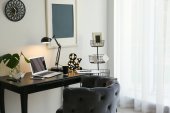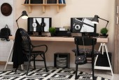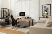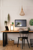 Stylowe miejsce pracy z nowoczesnego komputera na biurku