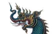 Smok statua naga w Tajlandii świątyni na białym tle