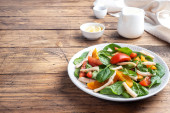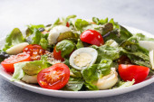 Świeże sałatki z pomidorów i jaj przepiórczych i sałata