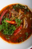 Tajski tom yum zupy podawane z ryżem i chili