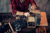 udane Biżuteria lutowania. człowiek pracuje z najwyższą temperaturę