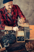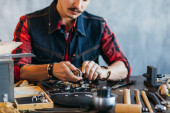 Zdjęcie "Jubiler piły element w miejscu pracy ." może być wykorzystywane do celów osobistych i komercyjnych zgodnie z warunkami zakupionej licencji Royalty-free. Obraz jest dostępny do pobrania w jakości wysokiej rozdzielczości do 5760x3840.