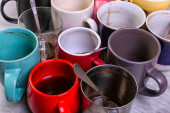 Zdjęcie "Pusty, brudne filiżanek o różnych kolorach na stole. Pojęcie dope kofeiny, brak energii i długo czekać. Miejsce." może być wykorzystywane do celów osobistych i komercyjnych zgodnie z warunkami zakupionej licencji Royalty-free. Obraz jest dostępny do pobrania w jakości wysokiej rozdzielczości do 5760x3840.