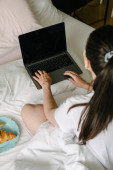 dobra dziewczyna szuka cieszy się śniadanie w sypialni