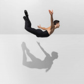 Zdjęcie "Biznesmen szczęśliwy taniec na białym tle na studio szary tło" może być wykorzystywane do celów osobistych i komercyjnych zgodnie z warunkami zakupionej licencji Royalty-free. Obraz jest dostępny do pobrania w jakości wysokiej rozdzielczości do 5760x3840.