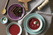 Tradycyjnych czerwonych buraków zupa - barszcz. Potrawy wegetariańskie