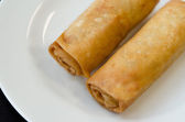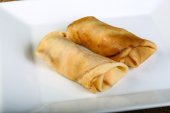 Dwa naleśniki smażone z szynką i serem na biały talerz, biały, szary tło