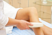 Kobieta klient kliniki kosmetycznej coraz masaż LPG na nogi do podnoszenia ciała