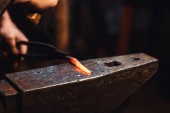 Kowal sprawia, że artystycznego kucia gorący metal na kowadło.