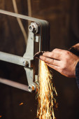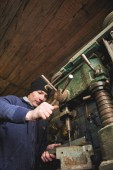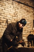 Kowal dzieli drewna opałowego dla rozpalenia pieca