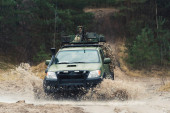 Zdjęcie "Ukraiński konkurs Offroad w mieście Kamyanets podilsky. Bagna i błoto na samochodach. Produkujemy duże kałuże" może być wykorzystywane do celów osobistych i komercyjnych zgodnie z warunkami zakupionej licencji Royalty-free. Obraz jest dostępny do pobrania w jakości wysokiej rozdzielczości do 5760x3840.