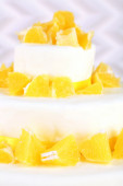 Sernik cytrynowy na czarnym tle ozdobione lemon zest zbliżenie