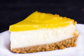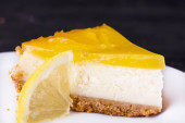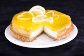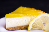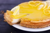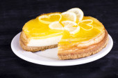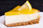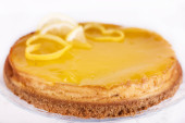 Sernik cytrynowy ozdobione skórka cytryny z bliska. Selektywny fokus