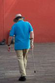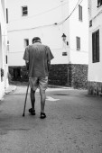 portret staruszki kijami, chodzenie w ten sposób w lesie na widok z tyłu
