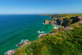 Skały w pobliżu: Bedruthan Steps w Corwal, Wielka Brytania