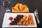 przekąski do piwa z żółtego sera, chechel, cebuli i bochenków chleba piwo na stole