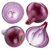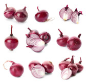 Cebula czerwony na białym tle. Zbiór różnych obrazów. Obcinanie sposób. Ścieżki przycinające.