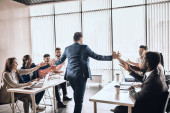 Zdjęcie "Korporacyjny międzyrasowy zespół biznesowy z wesołym liderem na spotkaniu, zbliżenie" może być wykorzystywane do celów osobistych i komercyjnych zgodnie z warunkami zakupionej licencji Royalty-free. Obraz jest dostępny do pobrania w jakości wysokiej rozdzielczości do 5760x3840.