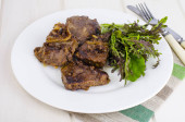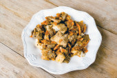 Smażona wątróbka drobiowa z marchwi i cebuli. Studio Photo
