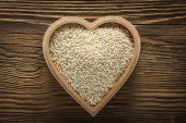 Zdjęcie "Nasiona sezamu w koszyku z serca kształt na białym tle na rustykalne drewniane tabela, widok z góry." może być wykorzystywane do celów osobistych i komercyjnych zgodnie z warunkami zakupionej licencji Royalty-free. Obraz jest dostępny do pobrania w jakości wysokiej rozdzielczości do 5760x3840.