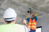 inspektor inżynieryjny sprawdzający i wprowadzający budowę w budynku