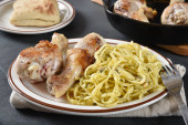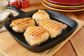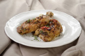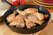 Wyśmienity smażone uda z kurczaka na patelni żeliwnych