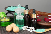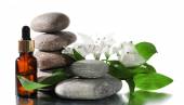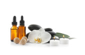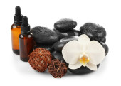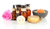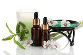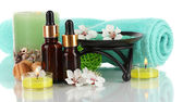 Spa kompozycja z olejkami aromatycznymi na białym tle