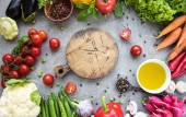 Zdjęcie "Pustej planszy i świeże warzywa na podłoże betonowe" może być wykorzystywane do celów osobistych i komercyjnych zgodnie z warunkami zakupionej licencji Royalty-free. Obraz jest dostępny do pobrania w jakości wysokiej rozdzielczości do 5760x3840.