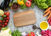 Pustej planszy i świeże warzywa na podłoże betonowe