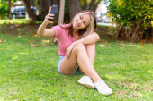 Zdjęcie "Piękna Blondynka, na lato zielony trawnik, ze smartfonem w jej rękach cieszy się słońcem" może być wykorzystywane do celów osobistych i komercyjnych zgodnie z warunkami zakupionej licencji Royalty-free. Obraz jest dostępny do pobrania w jakości wysokiej rozdzielczości do 5760x3840.