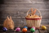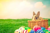 Zdjęcie "Zajączek i koszyk jaj. Koncepcja wakacje wiosna" może być wykorzystywane do celów osobistych i komercyjnych zgodnie z warunkami zakupionej licencji Royalty-free. Obraz jest dostępny do pobrania w jakości wysokiej rozdzielczości do 5760x3840.