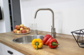 Zdjęcie "Nowoczesne biały kształt u kuchnia w stylu skandynawskim. Otwarte półki w kuchni z roślin i słoiki. Wiosenne dekoracje" może być wykorzystywane do celów osobistych i komercyjnych zgodnie z warunkami zakupionej licencji Royalty-free. Obraz jest dostępny do pobrania w jakości wysokiej rozdzielczości do 5760x3840.