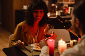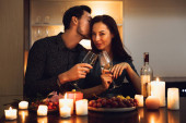Piękna para namiętny o kolacji przy świecach w domu, mężczyzna, stworzenie propozycji
