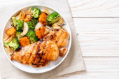 griled piersi kurczaka stek z warzyw (brokuły, marchew, cebula)