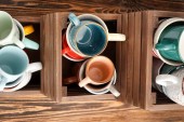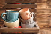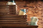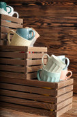 Drewniane pudełka z ceramiczne filiżanki