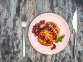 Zdjęcie "Pożywne śniadanie klopsiki i smażone ziemniaki, pokroić na duże kawałki, herbata w kubek szary aluminium na sztućce obok płyty. Całość kompozycji jest na stole stary Zarząd." może być wykorzystywane do celów osobistych i komercyjnych zgodnie z warunkami zakupionej licencji Royalty-free. Obraz jest dostępny do pobrania w jakości wysokiej rozdzielczości do 5760x3840.