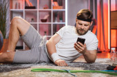 Zdjęcie "Szczegół portret przystojny mężczyzna jedzenie Sałatka ze świeżych warzyw i korzystanie ze smartfona na tle kuchnia ściany z czerwonej cegły. Zdrowy i wegańskie jedzenie koncepcja" może być wykorzystywane do celów osobistych i komercyjnych zgodnie z warunkami zakupionej licencji Royalty-free. Obraz jest dostępny do pobrania w jakości wysokiej rozdzielczości do 5760x3840.