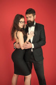 Zdjęcie "para zakochanych na daty. biznesowe spotkanie moda. wygląd mody. Wniosek lub przyjęcie zaręczynowe. Posiadanie kilku mężczyzna w smokingu i sexy kobieta. Tuxedo Brodaty mężczyzna i kobieta. Zawsze w stylu" może być wykorzystywane do celów osobistych i komercyjnych zgodnie z warunkami zakupionej licencji Royalty-free. Obraz jest dostępny do pobrania w jakości wysokiej rozdzielczości do 5760x3840.