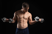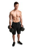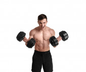 Zdjęcie "Mięśni kulturysta z hantlami na białym tle" może być wykorzystywane do celów osobistych i komercyjnych zgodnie z warunkami zakupionej licencji Royalty-free. Obraz jest dostępny do pobrania w jakości wysokiej rozdzielczości do 5760x3840.