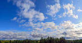 jesień las na szczycie góry przeciw błękitne niebo