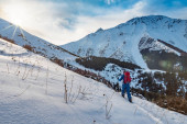 Zdjęcie "Dziewczynka kaukaski przygód wędrówki na rakietach śnieżnych na szczycie góry podczas zimowych wibrujący zachód słońca. Podjęte na szczycie Zoa szczyt w pobliżu nadziei, British Columbia, Kanada." może być wykorzystywane do celów osobistych i komercyjnych zgodnie z warunkami zakupionej licencji Royalty-free. Obraz jest dostępny do pobrania w jakości wysokiej rozdzielczości do 5760x3840.